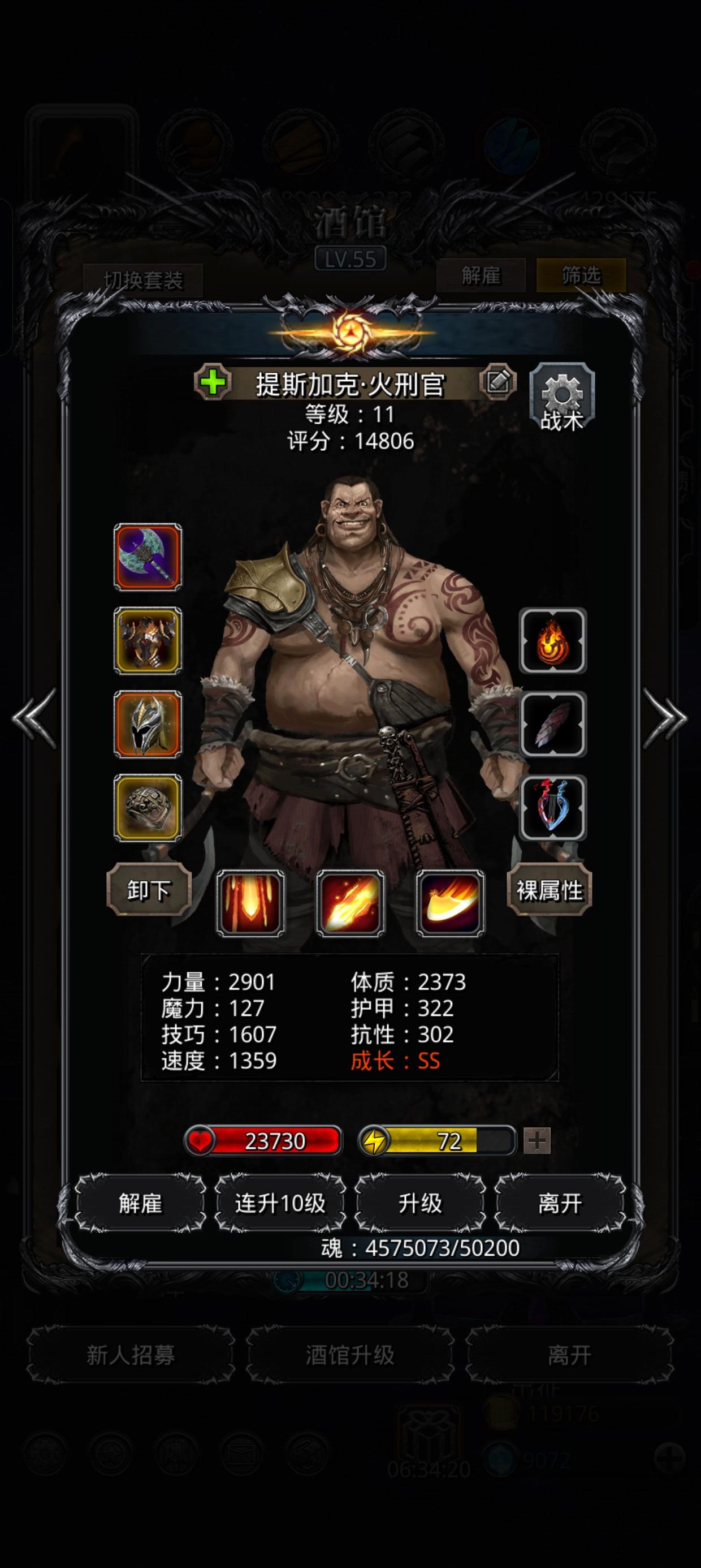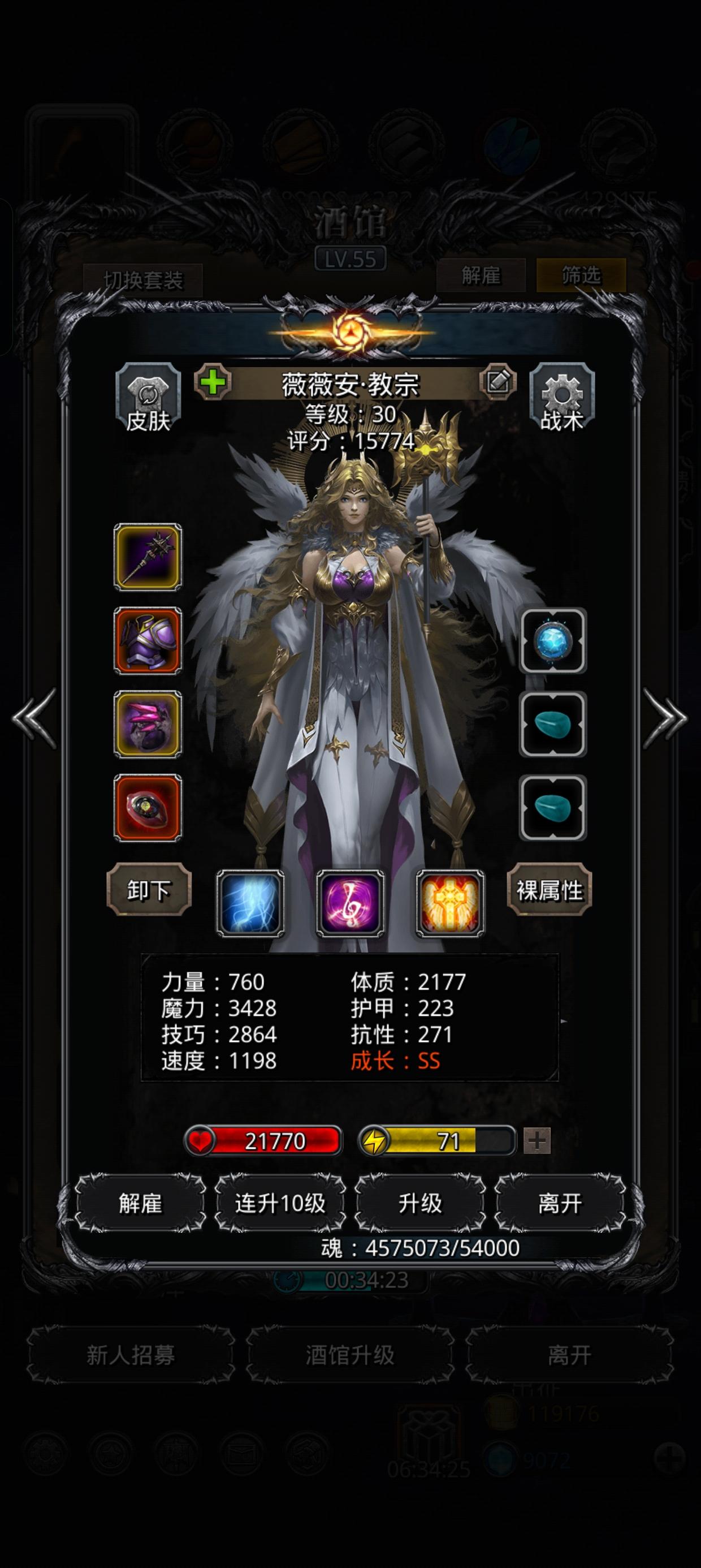 注意点:万年行尸的速度很快,图中神官带影兽卸负的情况下,还需要设置自动奶自己。火刑带的兽王吸血➕神官奶基本保持血量不变。神官上述装备,盾锤200甲,独裁1317技巧,奶680左右,加甲1230左右。