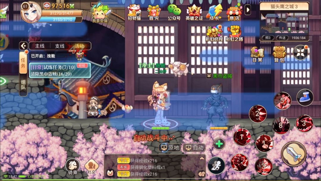 这个时候我们直接进入后直接退出,然后去三十级怪物处挂机刷黄铜套装,刷到黄铜套装后去做日常任务的试炼任务,这个时候的经验大概是正好升到四十级,完成日常活跃30后可以领取一张秘境挑战令,然后在福利页面领取等级经验药水,使用经验药水后直接进入彩虹秘境。这样所获得经验才是最大化的。