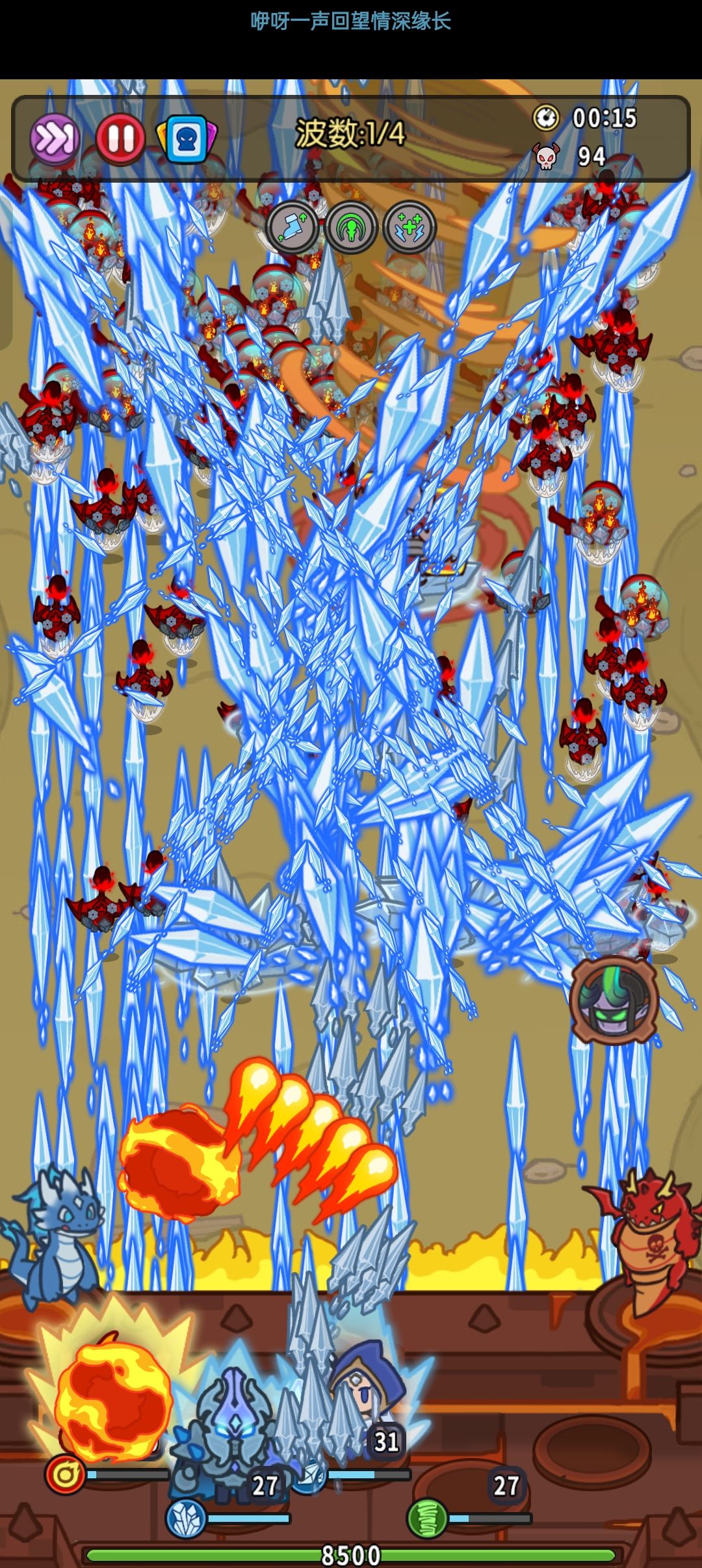 ②只要冰女成型通关基本就稳了,自爆蝙蝠解决了,后面最大的问题就是蓝龙浪费时间,冰女、火女、鸟德,这三个主C,火女拿个基本的五连炎爆就够用,剩下的牌全给冰女和鸟德。鸟德有百烧才能进4分钟以内,当然颜色越好时间越短