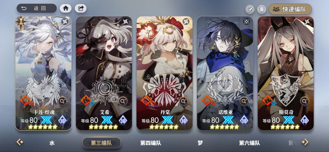 这个配置转色充裕,也方便对轴释放技能,卡莲和斯莫奇的位移为火队提供了充裕的调整身位的能力,大量的火系格子也能更高频率的触发极光和绕身普攻,火卡莲米字型最大范围的连锁伤害和装备技能的无视防御都能让团队输出更上一层楼。最后则是诺维亚提供溢出的治疗,再利用团队满血提升普攻和连锁伤害,是挑战高难关卡必不可少的助力。
