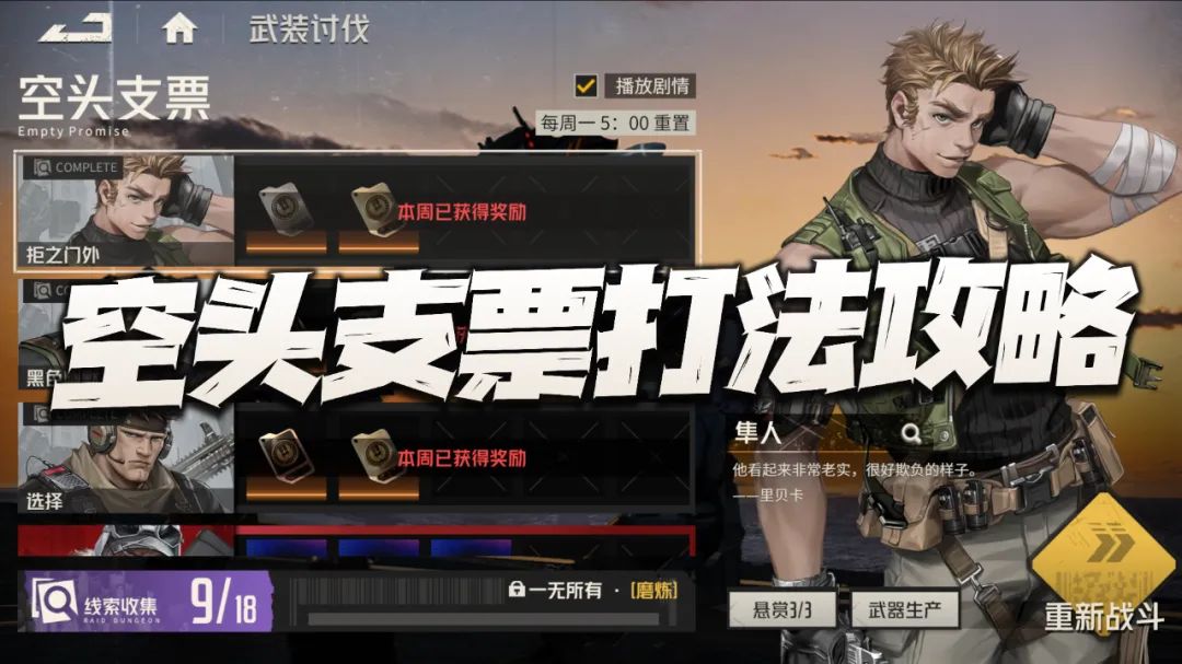 大家好,我是正在打哈哈的何二维一。今天的攻略咱们来简单说说全新的武装讨伐副本“空头支票”的打法攻略,希望能给大家带来一些小小的帮助。当然有想看视频版本的可以直接参考下面的视频。