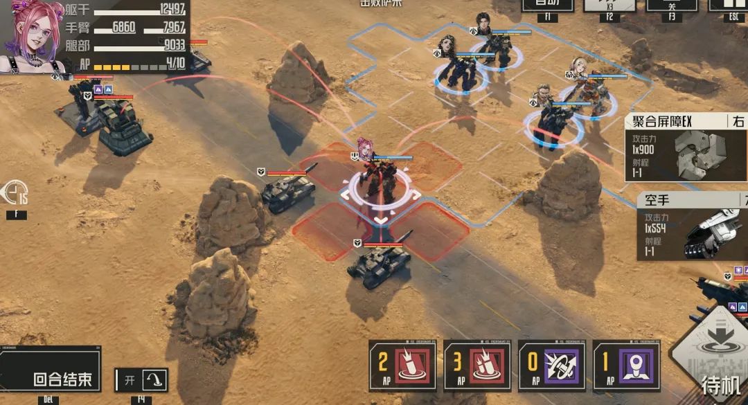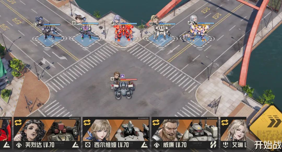 接着是第三关“选择”,这关的boss会有类似于凯瑟琳的天赋“奔袭”2格的效果,外加一旦被他打到,则我方机师的躯干会有非常大的损伤,因此这关的通关思路就是要利用上下两侧我方的角色分批次来攻击boss,让他不断在上下奔袭中游荡,所以我方也需要尽量上具有远程攻击能力的角色。