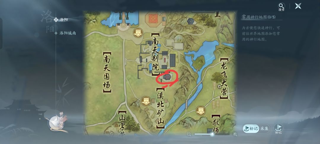 4,轻功成就,因为这个成就分类在另一个成就里,不显示在洛阳成就内,位置如图六,飞上七凤楼楼顶。