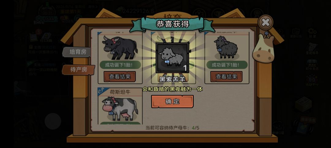 真的开了真的开了洪水新篇章的时候倒计时12分钟稍微处理了一下牛和一点点甜,但是只处理了一部分,寻思着万一能保住呢所以也留了一部分,最后果然都没了,幸好当时还就是在培养室里培养了一部分,虽然母牛都没了,但是新出生的四五个小牛羊至少保证了之后新培养起来方便一点,我的好几只福牛呜呜呜