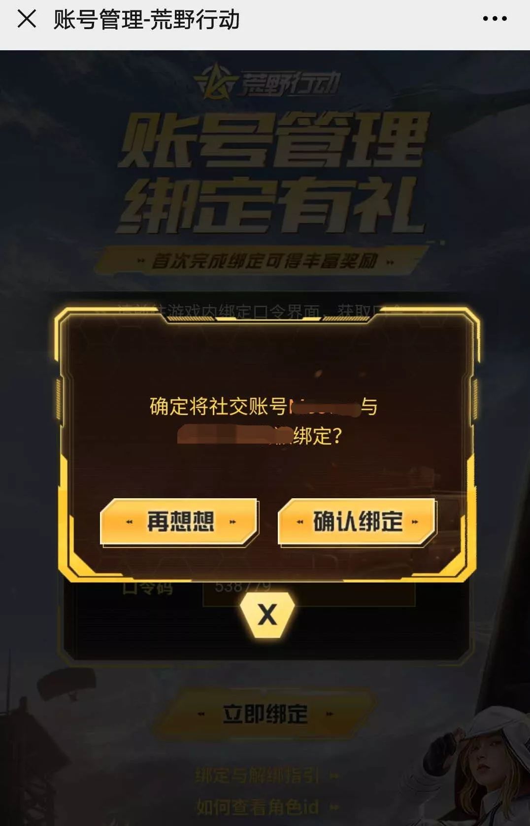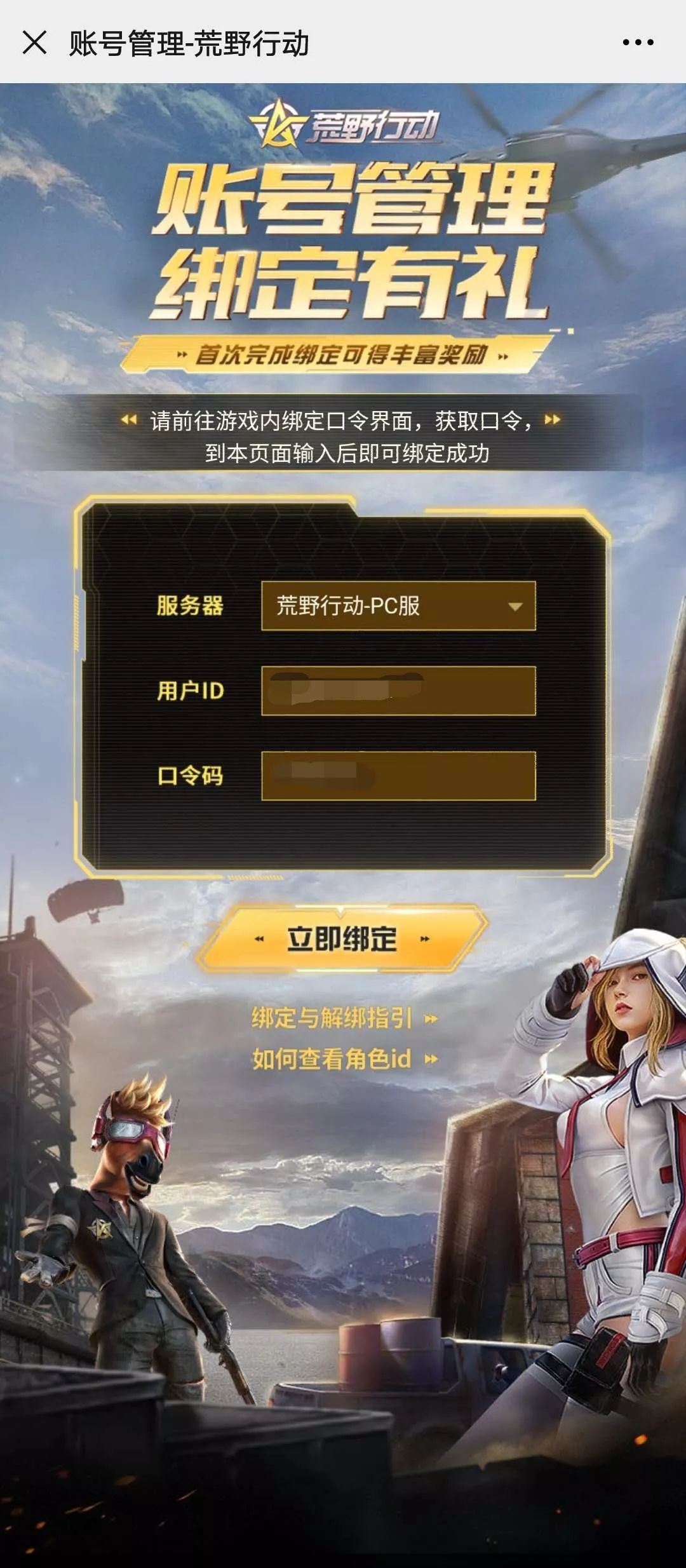 点击“立即绑定”,即可看到用户ID和口令码。要注意口令码4分钟后会刷新,荒友们要及时填好口令码哦~