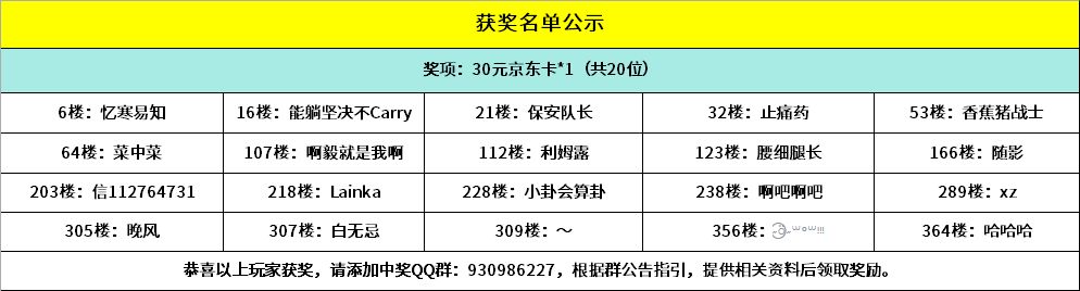 -------------------------------------------------------------(中奖名单)--------------------------------------------------------恭喜以下幸运的小骑士获得活动奖励,请中奖的小骑士添加获奖群:930986227,请加获奖群后,登记相关获奖信息,超过15个自然日未进群未登记视为放弃奖励~