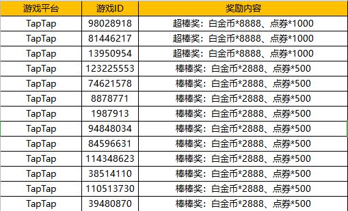 超棒奖(3名):白金币*8888、点券*1000