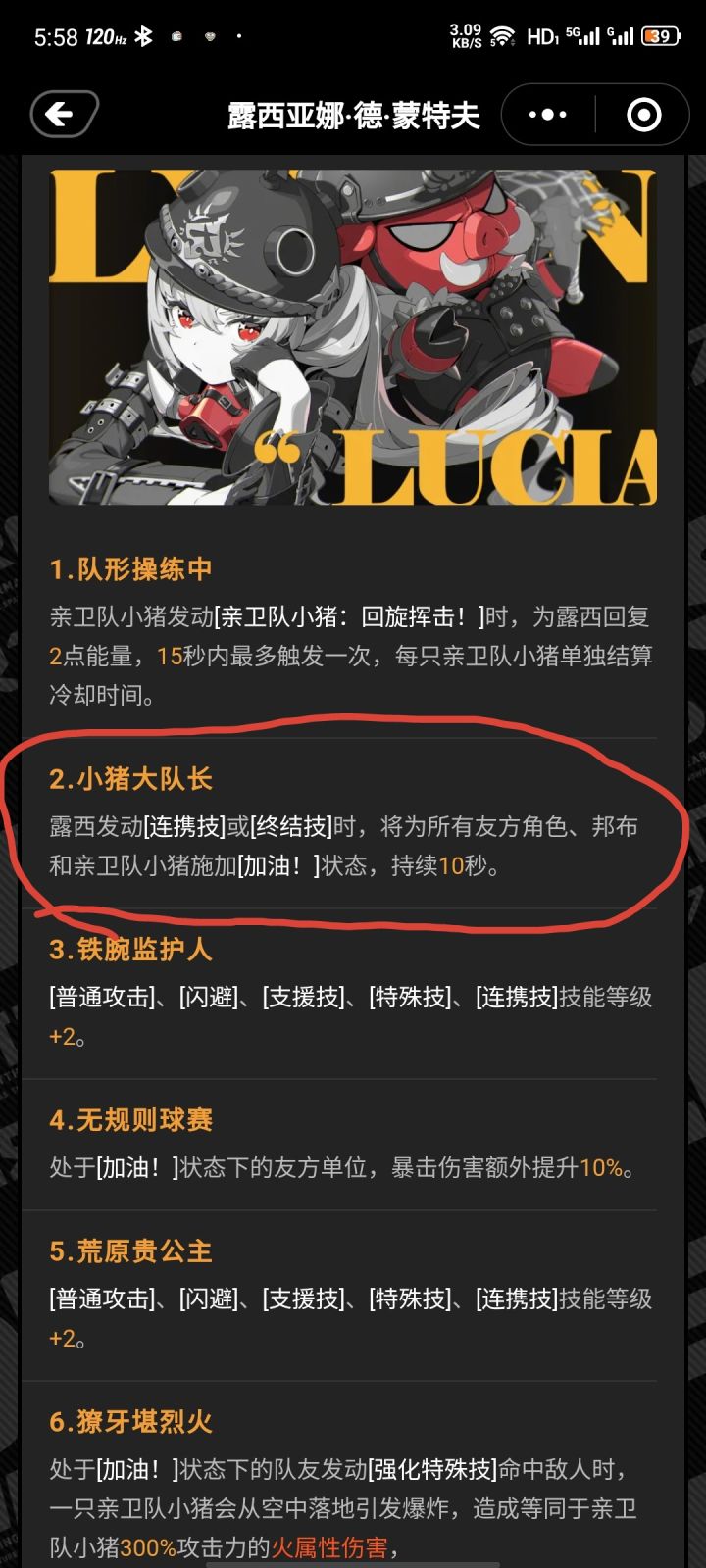 殊不知露西有一个极其离谱的命座,就是这个二命,可以让露西的增益在连携之后直接触发,很难想象这个命座没有放在六命。