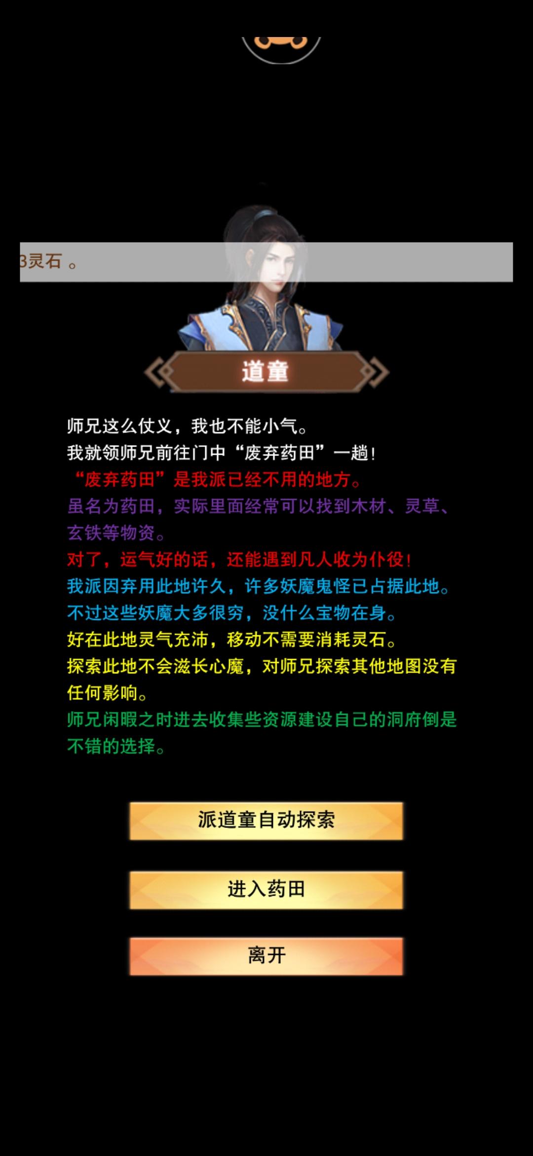 “此地作用之一是培养药材(有数量限制),上可培养高星药材,下可催熟洞府所用的低端灵草,由于我对忘忧酒念念不忘,于是随便培养了一种名为忘忧草的杂草,感觉没啥用处,打包扔到了药田里。”
