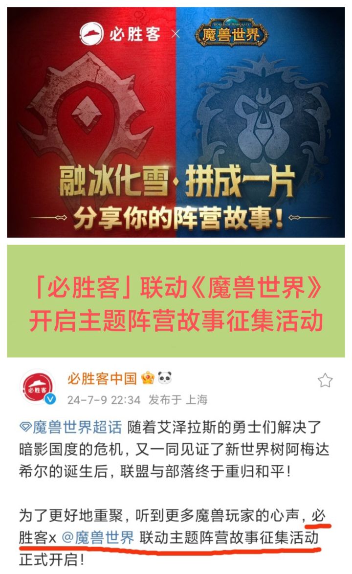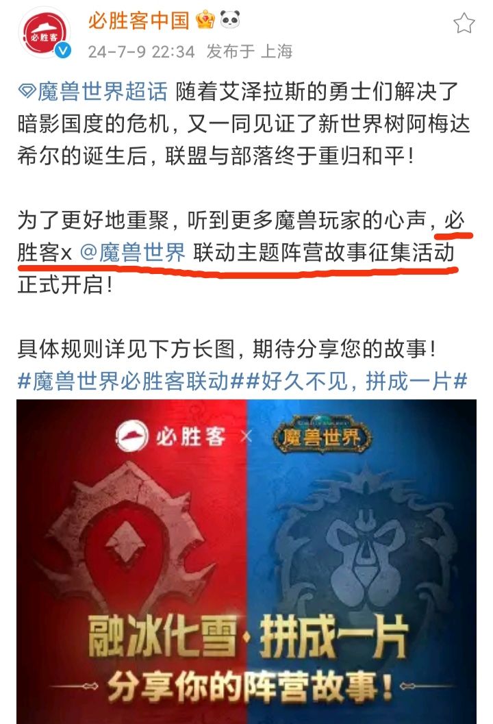 必胜客联动《魔兽世界》 搞故事征集活动❗❗❗