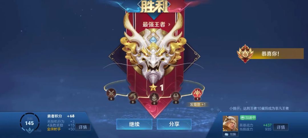 王者荣耀S36赛季更新也有将近半个月了,相信很多玩家都已经打上了王者段位,开始冲巅峰赛了,还没有打上王者段位的要加油了哦。这个赛季和上个赛季一样,只要能够达到王者段位,那么后续上分就会变得非常容易,从王者0星到王者20星左右几乎没有难度,而且也不用担心从王者段位掉下来,只要上了王者,除非是好多天不打排位,否则就不可能掉到星耀。
