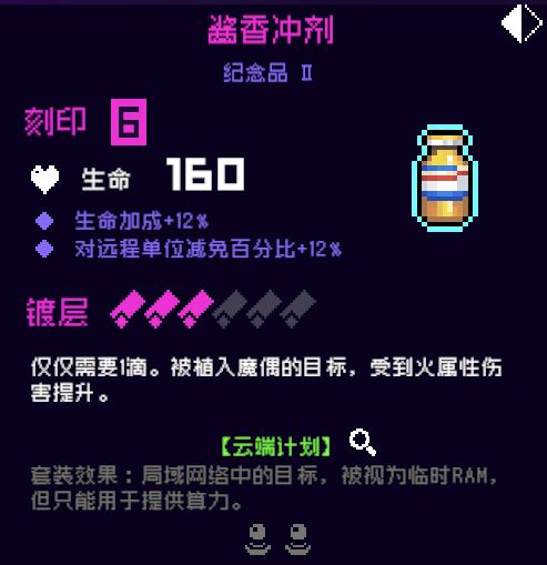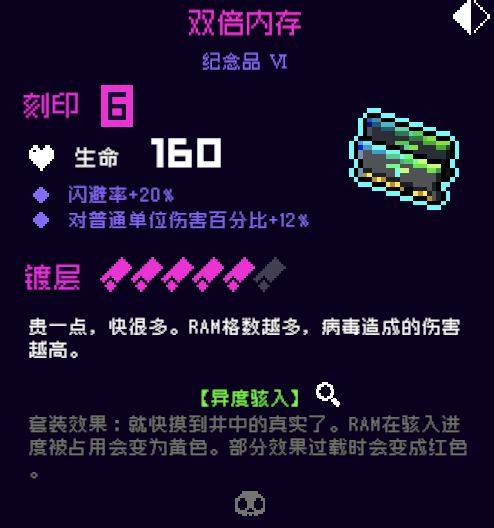 5.双倍内存,6号位,毒套里加成很高的紫色纪念品了,现在换属于押宝行为,就看新版本的火毒强不强了,一般推荐。如果火毒强,且可以吃到双倍内存伤害,估计会上升至非常推荐了。