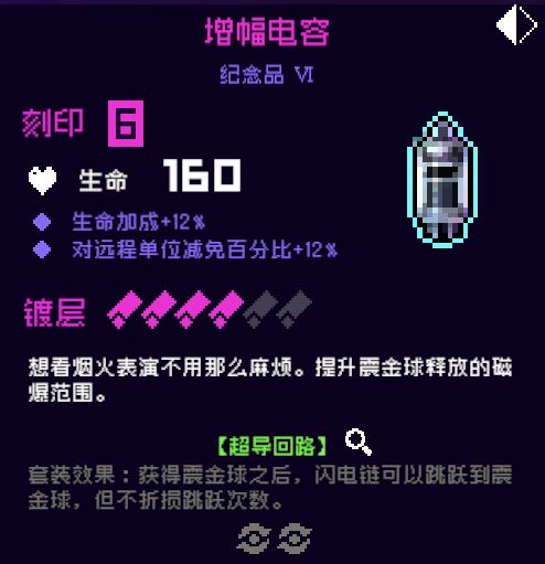 8.增幅电容,6号位,电二磁暴增加范围的纪念品,理由和月牙胡子一样。如果你喜欢玩电二,还是非常推荐换的噢!