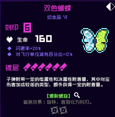 14.双色蝴蝶,6号位,如果你是钟爱玩电陀螺套的玩家,双色蝴蝶也是不错的,镀层越高附着的属性越高,陀螺生成速度也会越快,推荐!