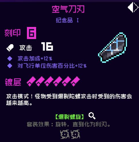5.空气刀刃,1号位,此件是陀螺套的独立乘区纪念品,虽然1号位常常是被脉冲薄荷霸占,但它是陀螺套非常重要的加伤纪念品,如果你是电套陀螺爱好者,一定要换!强烈推荐!!