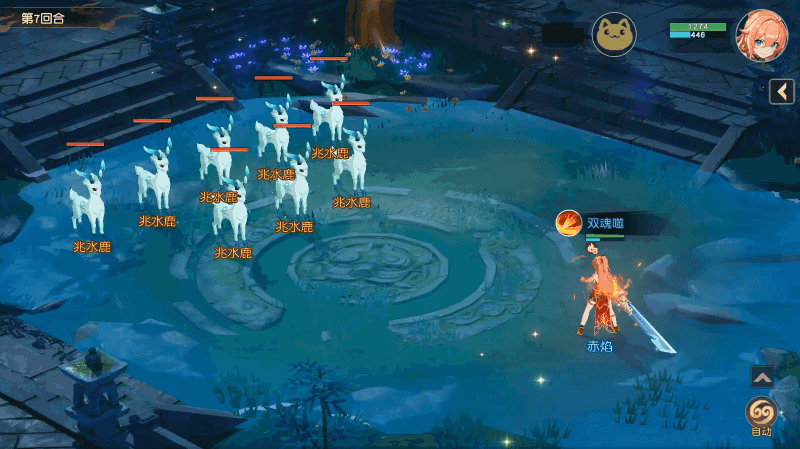 [双魂噬]攻击敌方2个目标,并为自身回复伤害值一定比例的气血,需消耗1层火魂