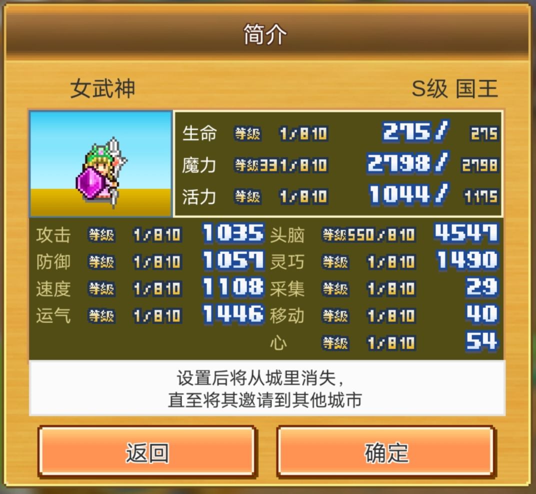 优势:血量系数15,所有技能精通,天生持盾,派遣大范围,天生自带200运,能与国王配种