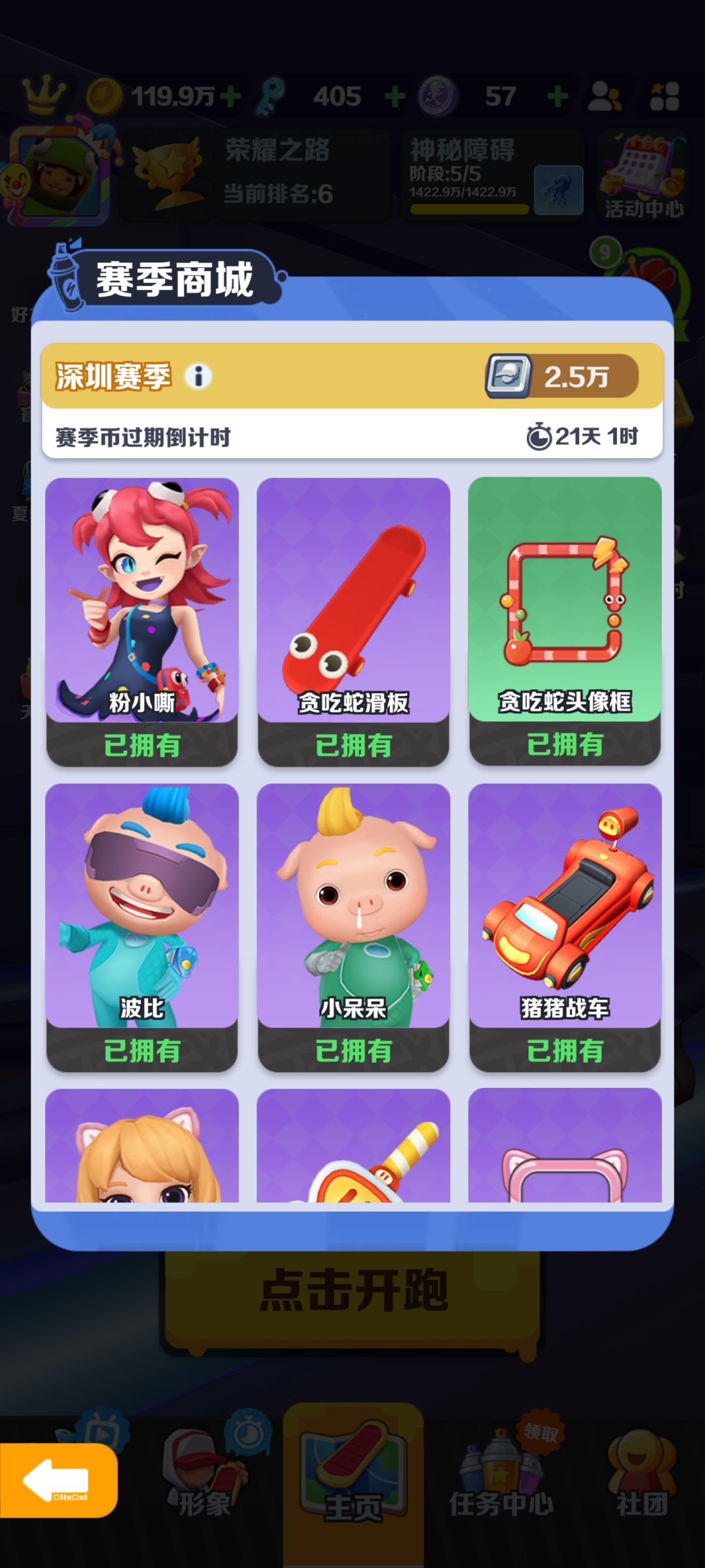 赛季商城能兑换什么?兑换什么好?这可能也是有些人的疑问,一般来说赛季商城的奖励是当前版本新角色滑板一套,这个版本比较特殊,因为猪猪侠联动,所以把之前猪猪侠联动的角色套装也放在里面了。一般来说肯定是优先兑换角色套装,如果你角色套装兑换完后,可以按照自己比较缺的资源进行兑换;