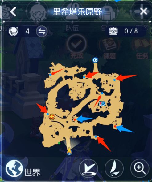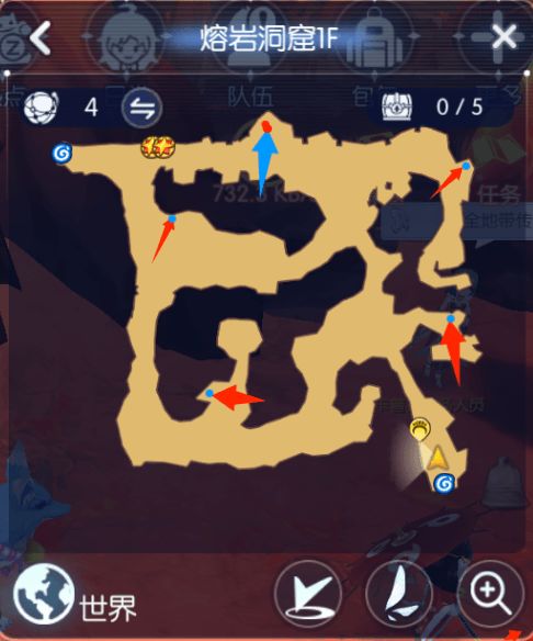 除了海底神殿外其他地图的标注都是蓝色箭头指向紫色宝箱,红色箭头指向其他宝箱(普通的和蓝色的)