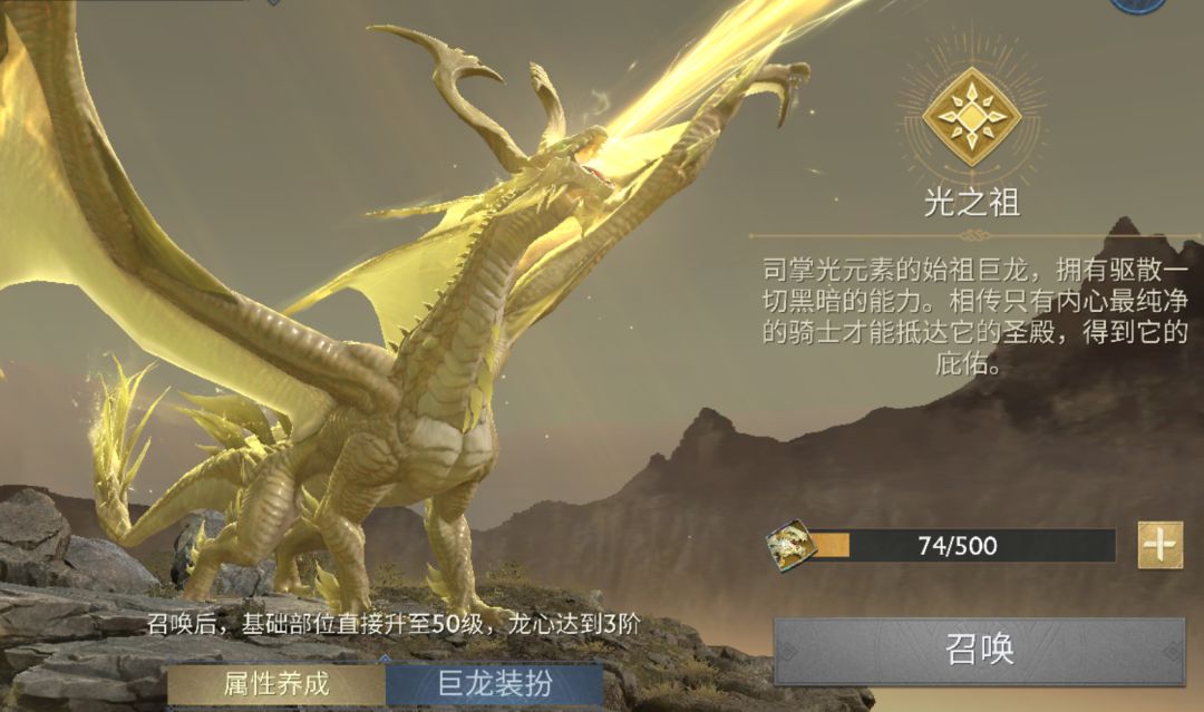 光阵灵二技能要在开始三回合后启动,每3回合可对敌方全体造成一次伤害,并且可概率为部队添加一层光明印记,提供相应减伤效果。光之祖在设定上会更侧重于保护,光之祖的咆哮可形成持续3回合的护盾,降低伤害并反射伤害给敌方部队,护盾每回合还可为我们清除减益(包括降低暴击率、易上),每次清除可提供光明印记。光队在打暗队时有较明显的克制效果,光明印记叠加后队伍会越来越肉。第三技能、第四技能的配置与暗阵灵相当,在高元素评分的情况下,可为队伍提供极大的助力。