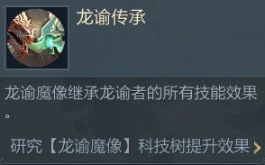 龙谕魔像可继承龙谕者所有技能效果,即攻守兼备(概率冲击敌方后排)、喷吐(三回合一次攻击)、禁锢(使目标无法攻击)、龙威(降低目标攻防),并受到相关技能科技树的增益。大家可以将龙谕魔像当成拥有额外技能、数值的T14龙谕者。独特技能