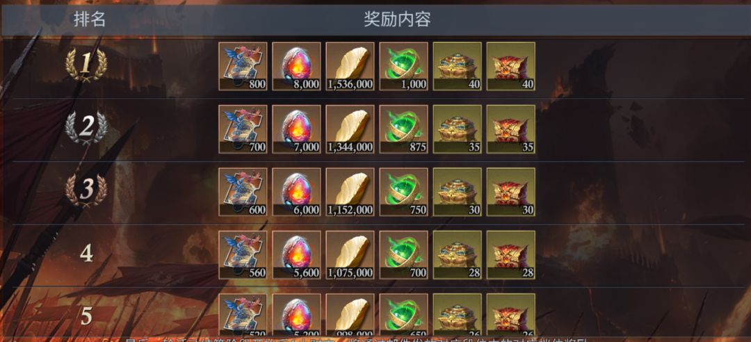如果有机会进入决赛,可根据排名获取大量的龙焰竞技场碎片、巨龙精魄、光耀石,以及高级素材自选箱、高级材料自选箱,这个奖励对于所有参赛玩家都是重磅级别的奖励。联盟指挥官要尽量筛选出足够强力的玩家,这样才能一同获取高额奖励。3、决赛个人积分奖励