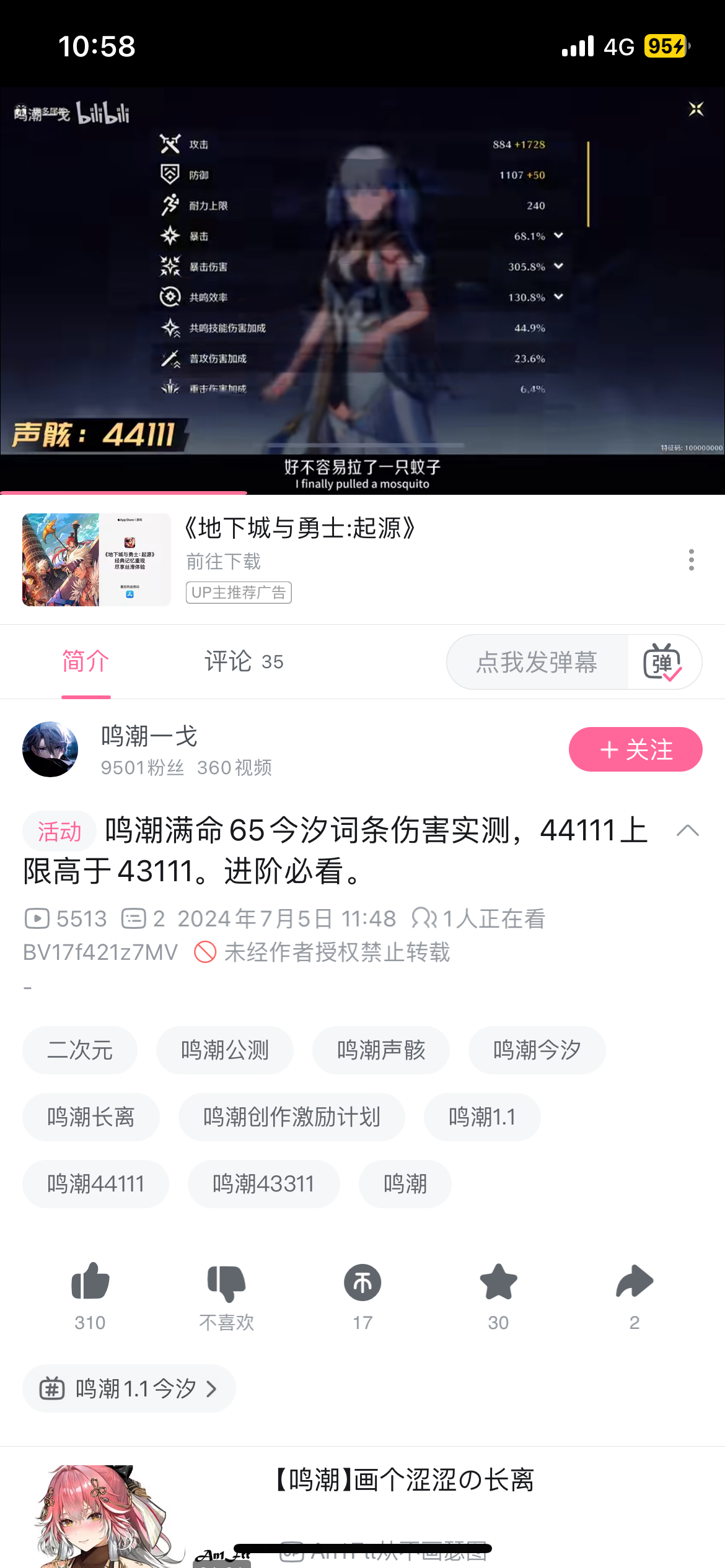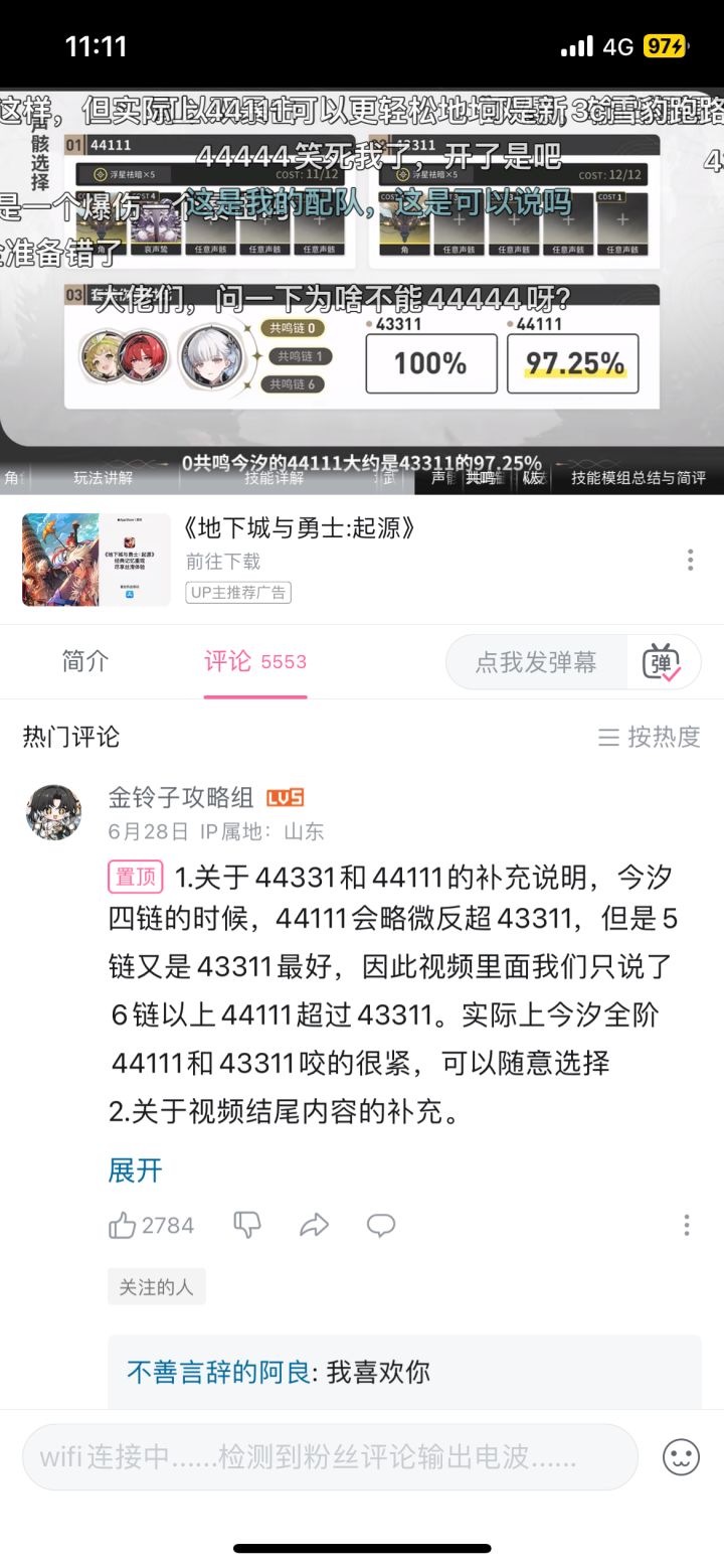 声明:这是我最后的波纹了,最后再发一次关于44111的推荐帖了。从最开始开服那会的暗主,到现如今的今汐,我全部都是自己专门花了时间精力资源,拉了两套,在深渊进行实测。具体的面板,伤害数字我也毫无保留的展示了出来,深渊环境我也进行了说明,后面还根据个人体验,将具体的理由给罗列了出来,甚至,我还叠了甲!我说的是,「对单次伤害上限没有追求,并且目前没有刷到合适的43311」的萌新平民玩家!