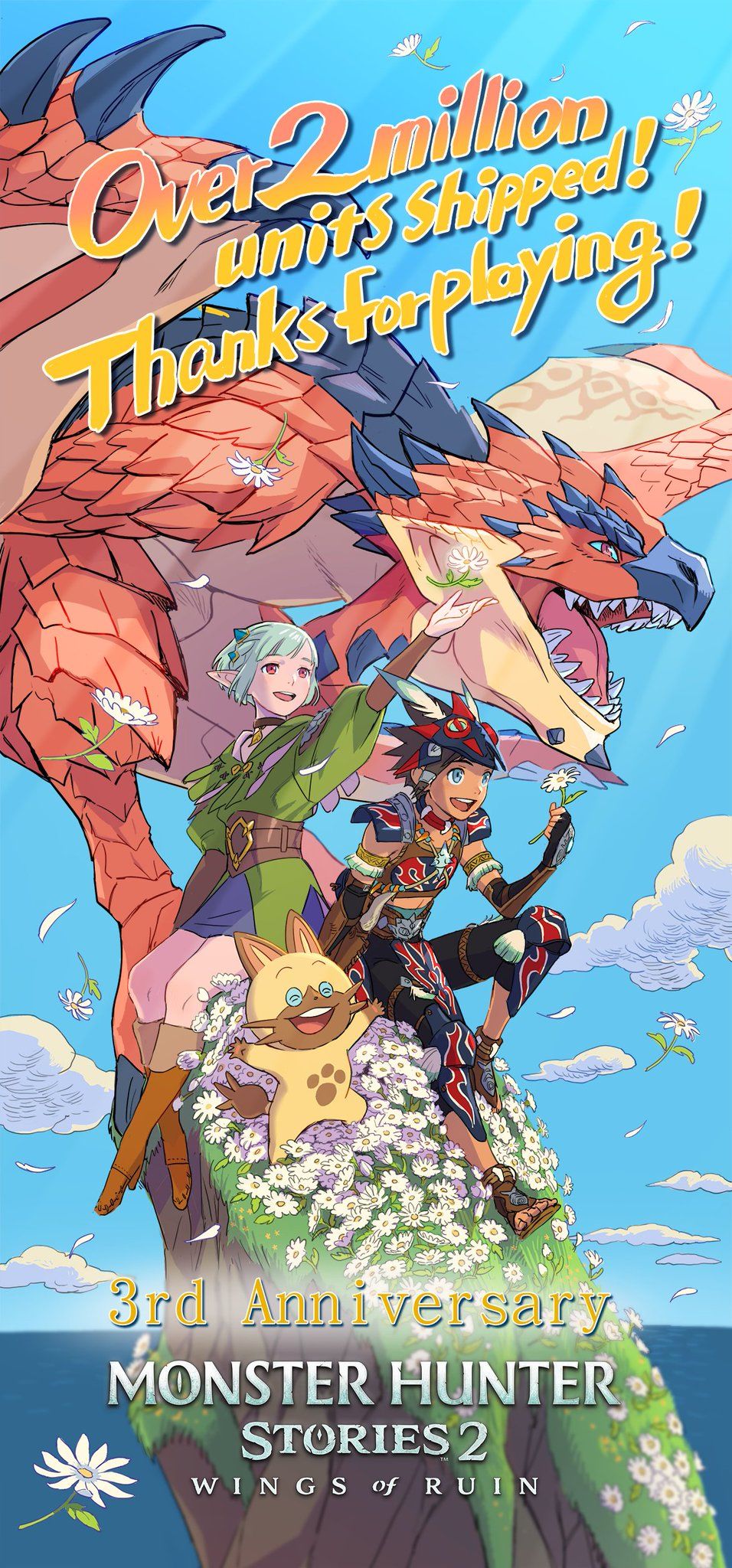 日前,《怪物猎人》官方推特账号发布了一张贺图,庆祝了衍生系列游戏《怪物猎人物语2:毁灭之翼》发售 3 周年,以及其已经突破 200 万份的销量。该消息最早由卡普空于上个月宣布。