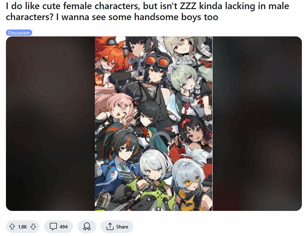 不过有趣的是,近日有海外玩家在Reddit论坛表示:“我的确很喜欢这些可爱的女性角色,但是你们难道不觉得《绝区零》的男性角色有点少吗?我还想看到一些帅气的男角色。”