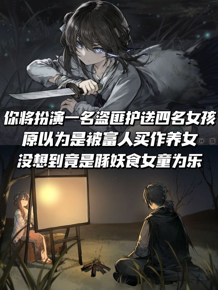 💕你将作为一名盗匪,接受人牙子委托护送四名小女孩从华州城运至洛阳城。原以为这四名女孩皆是卖往富人家里当养女,却不曾想竟是豚妖喜食女童,买来食用!