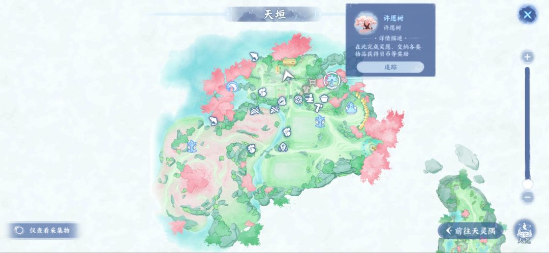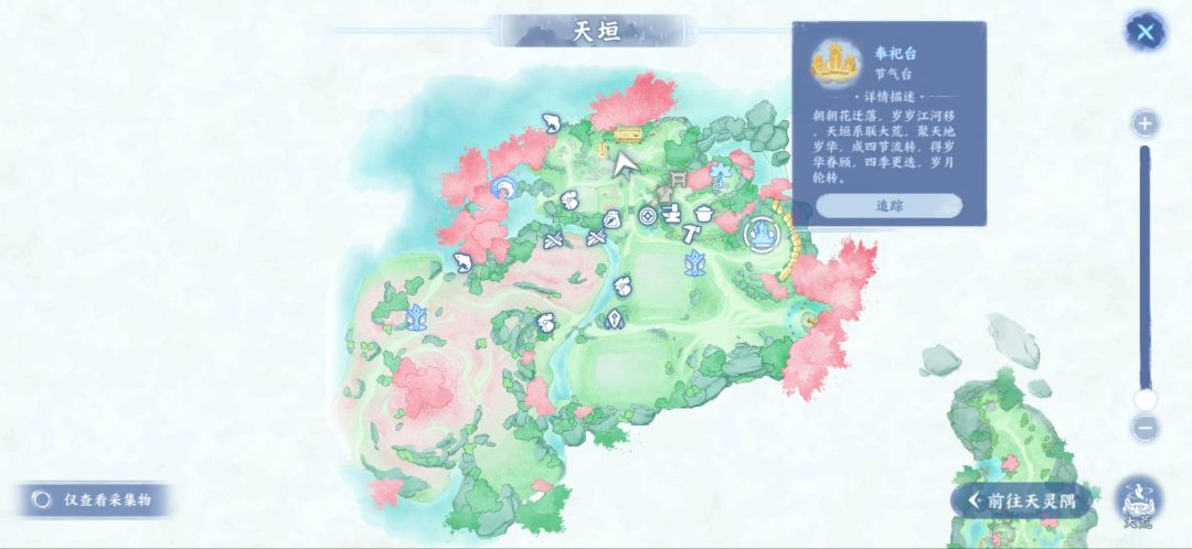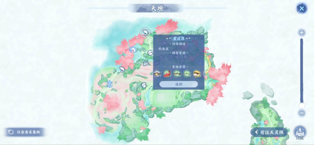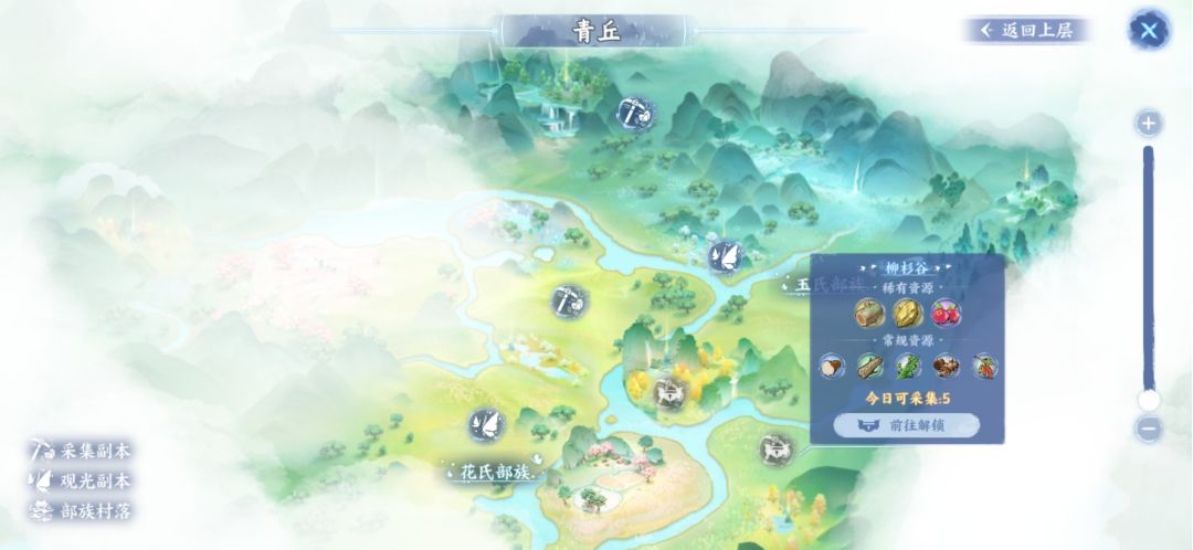简单说,就是采集副本,目前有四处采集点,分别是翠桦崖、胡杨洲、银杏坡、柳杉谷,能够采集各种稀缺资源。还有两处观光点(小世界),分别是鲸跃台、胡杨崖边。