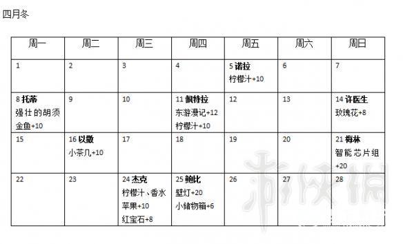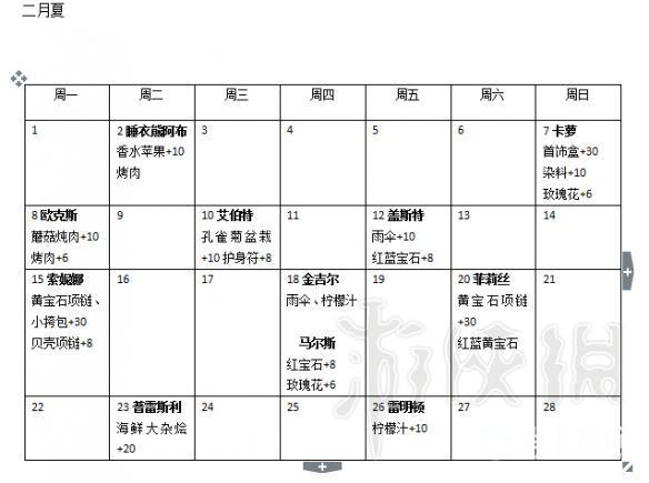 还有就是送玫瑰花基本都+6,可能有人玫瑰不喜欢的,然后是生日当天送礼3倍好感。