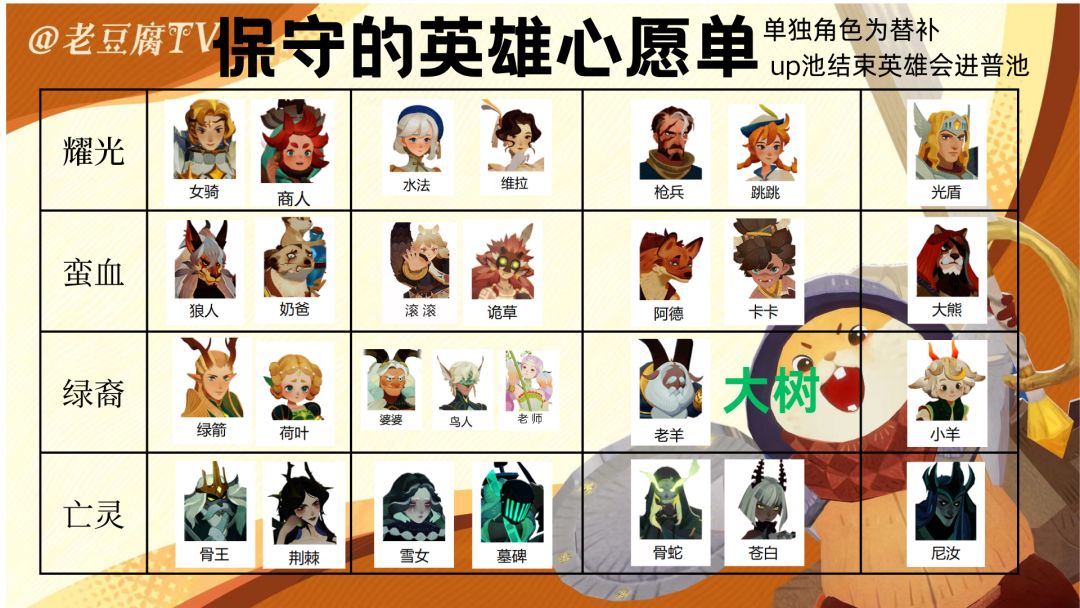 为了方便大家对于培养英雄的顺序有一个更加直观的认识,我又做了一张英雄培养推荐榜,不代表英雄的实际强度,而是说,你按照这个顺序来培养玩得会比较舒服一些,如图所示。