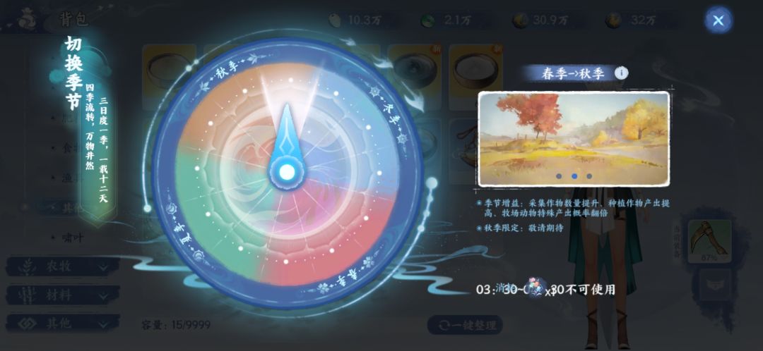 23、季节切换建议设置在左上角那个季节处,点击跳出界面,切换。