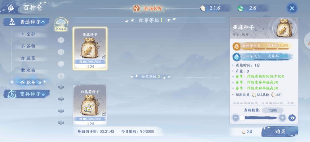 (百种仓里亚麻属于花卉,图鉴里又属于蔬菜?)