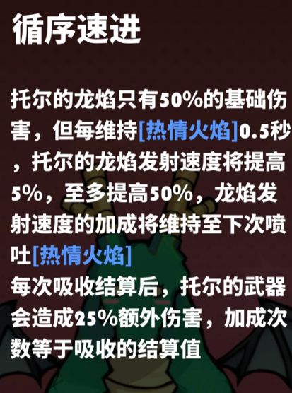 前期玩家攻速起不来,热情之火和普攻伤害都平庸,应该采用弹幕全部吸收的策略