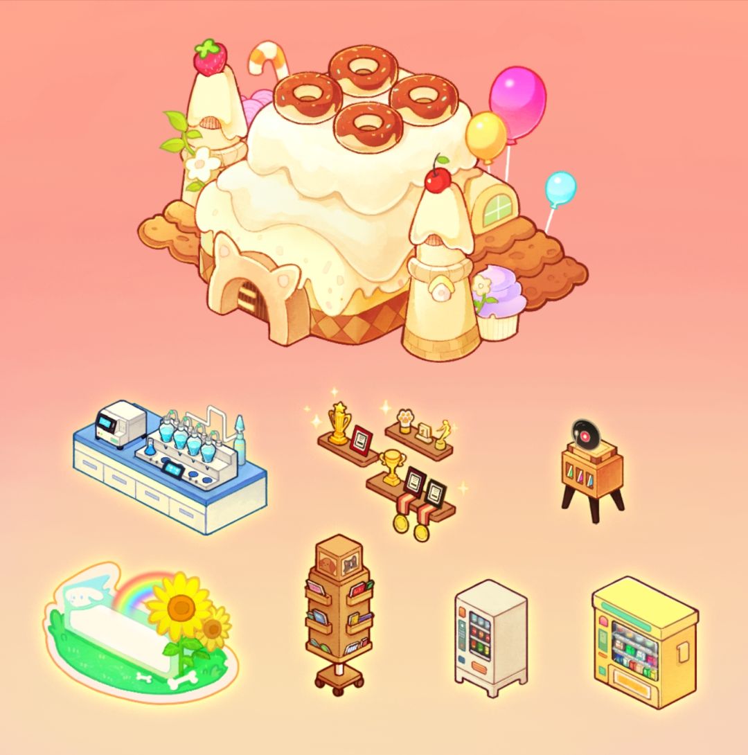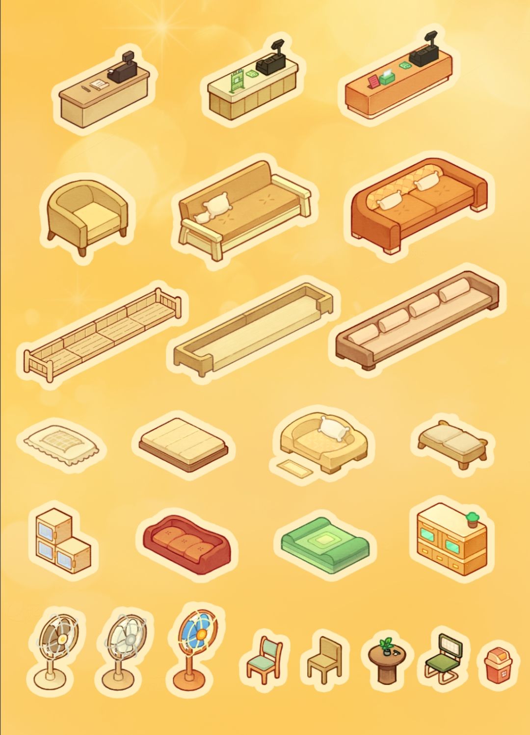 待我们的店铺慢慢壮大起来后,将会解锁更多的设施家具哦!比如以下是一些设施: