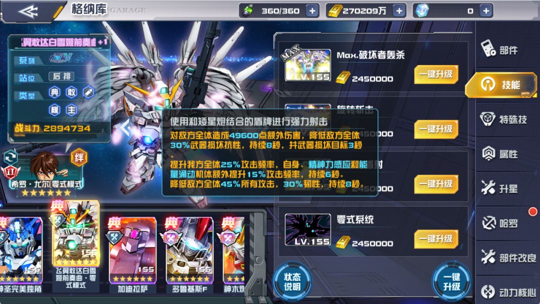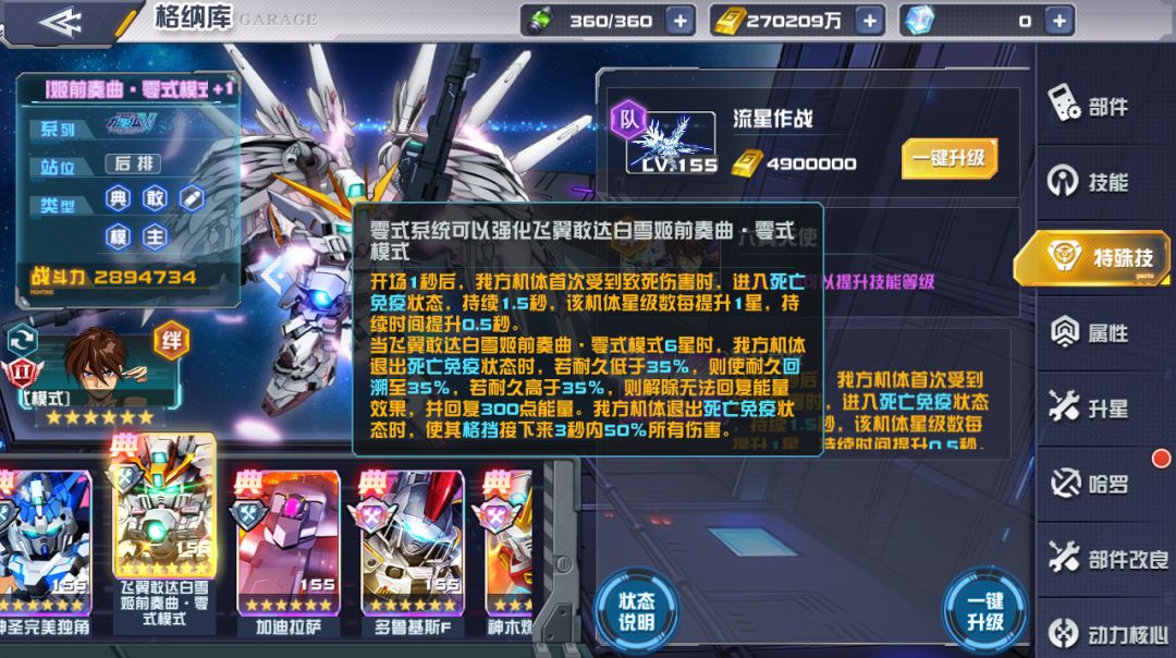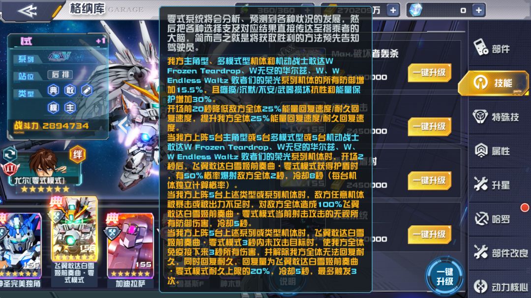 飞翼敢达白雪姬前奏曲·零式模式技能一览