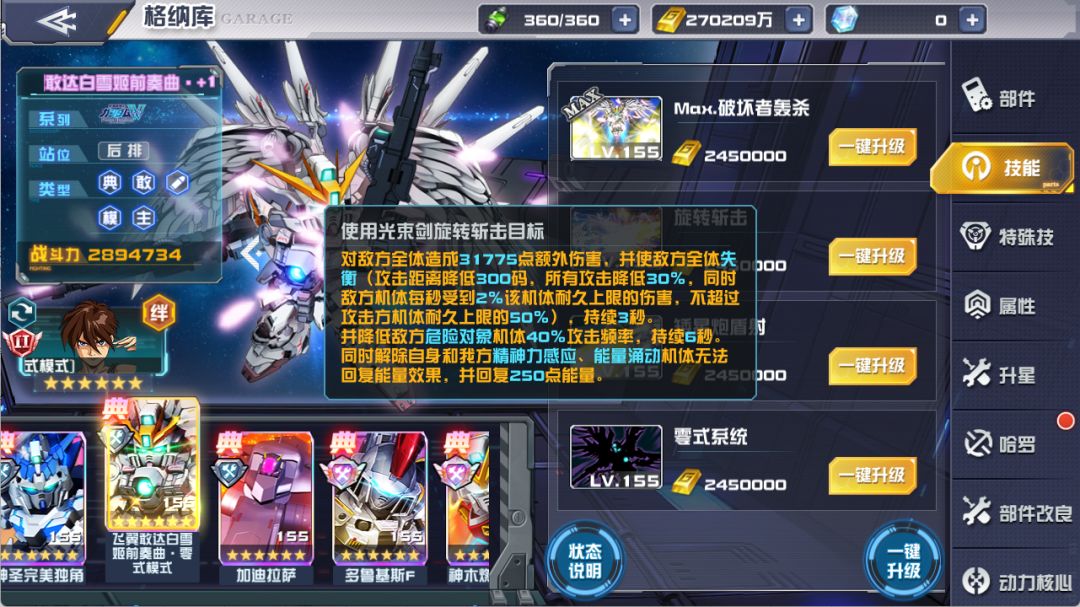 以上便是本次飞翼敢达白雪姬前奏曲·零式模式的技能介绍,感谢各位指挥官的收看!