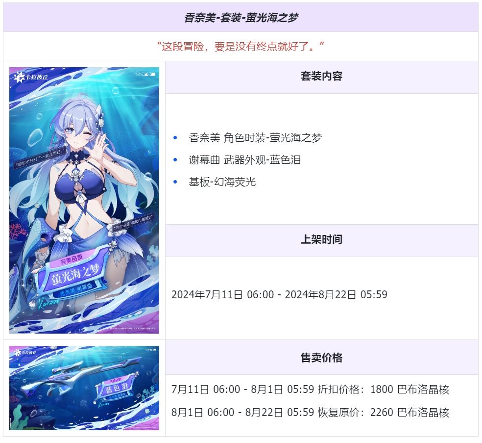 活动时间:2024年7月11日 6:00 - 8月1日05:59 (7月25日 23:59后将关闭购买)