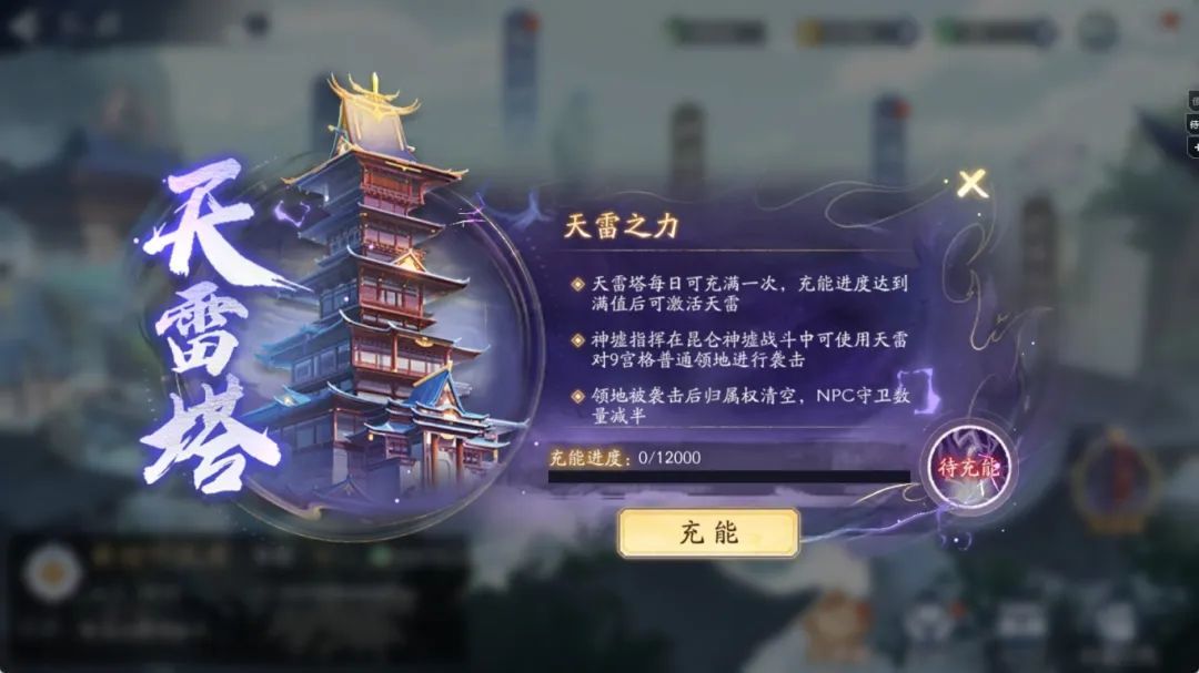 1.1 从昆仑神墟第四赛季开始新增天雷塔,仙盟成员每天可消耗建设工具对天雷塔进行充能,充能完成后可在神墟中由神墟指挥释放“天雷”;