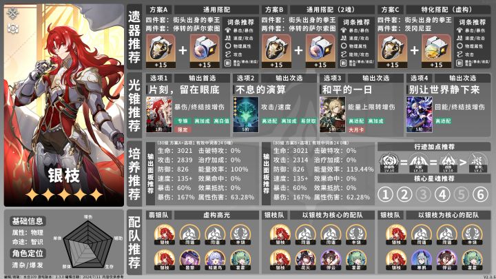 1、在计算银枝的双暴配比时应考虑到天赋提供的2.5*10暴击