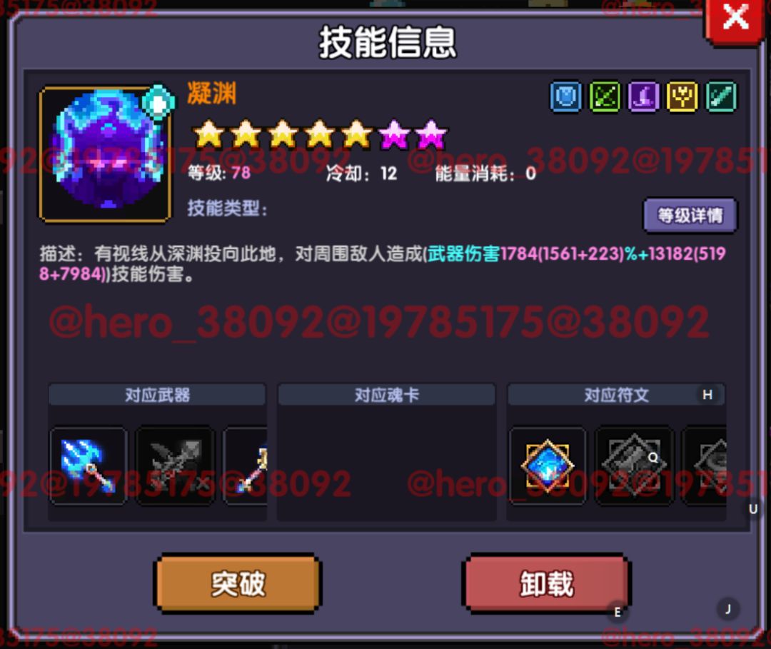 3.装备凝渊时,噬身的等级和星级继承凝渊(资源不够的玩家,升一个橙技能就可以)