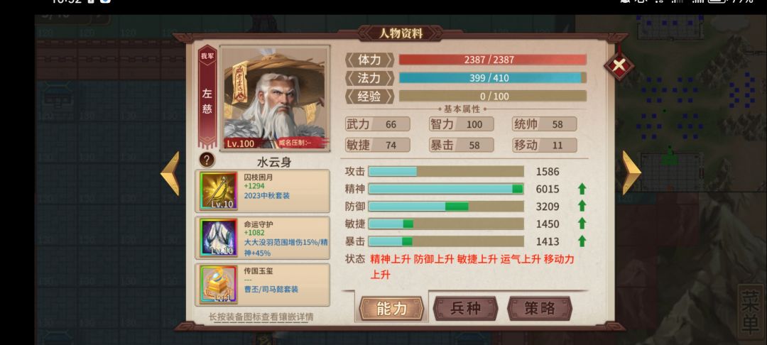 在炼狱难度下,第一波伏兵的大象有全屏降低属性82%,这可能对很多朋友是一个难以处理的挑战,可以考虑购买装备:竹书纪年。以中毒配合司马懿的回合扣血处理大象