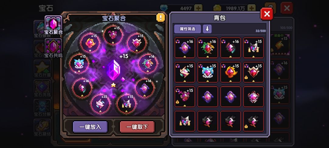 宝石凑够套1直接做聚合共鸣,聚合只强化,共鸣只升星,共鸣玩橙紫宝石,橙紫宝石不单独强化