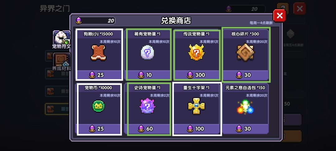 开服当天记得打异界之门,周五就刷新了,白框为必买,绿框为按需选择购买.