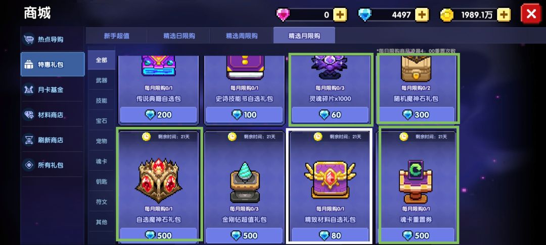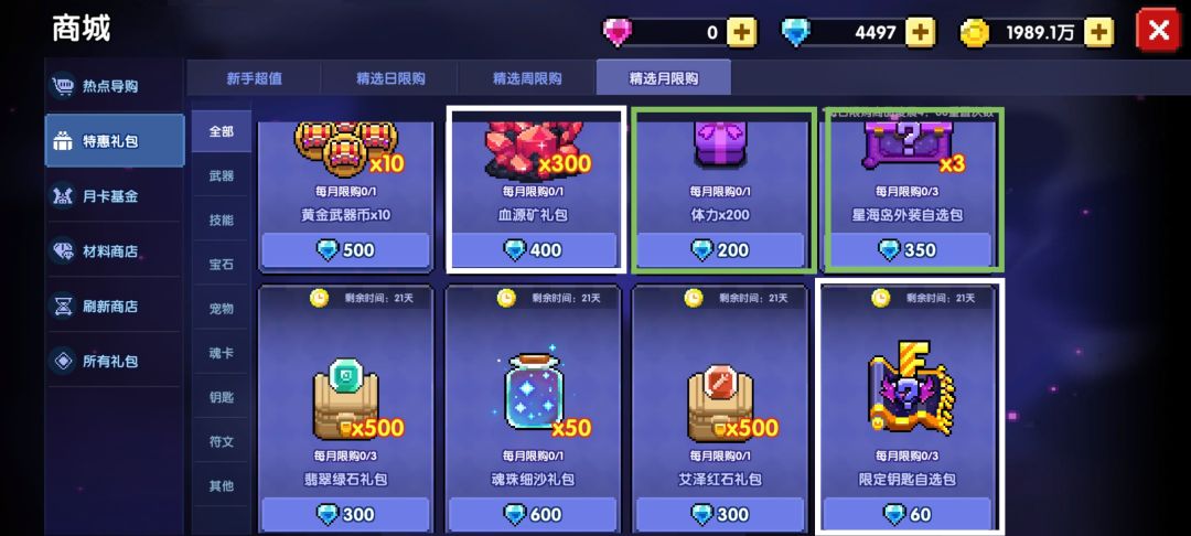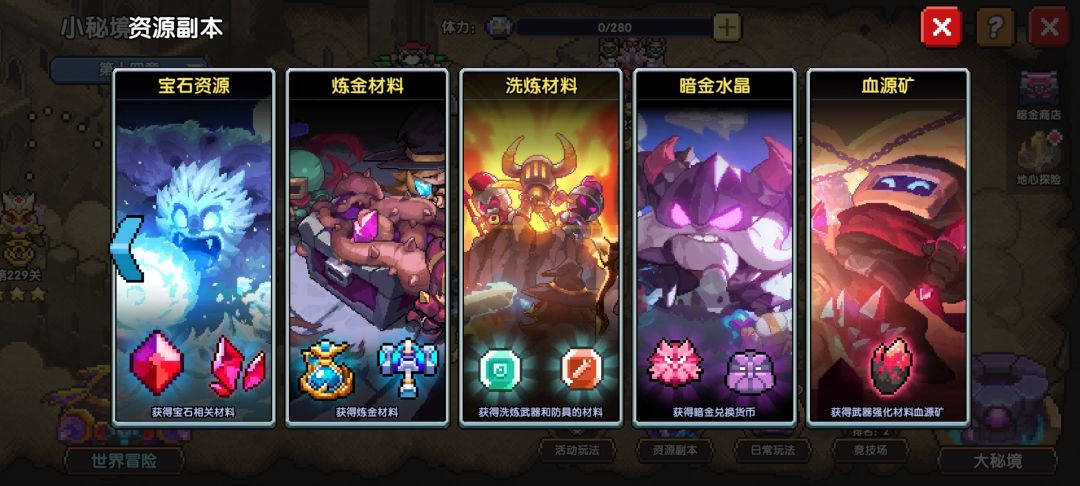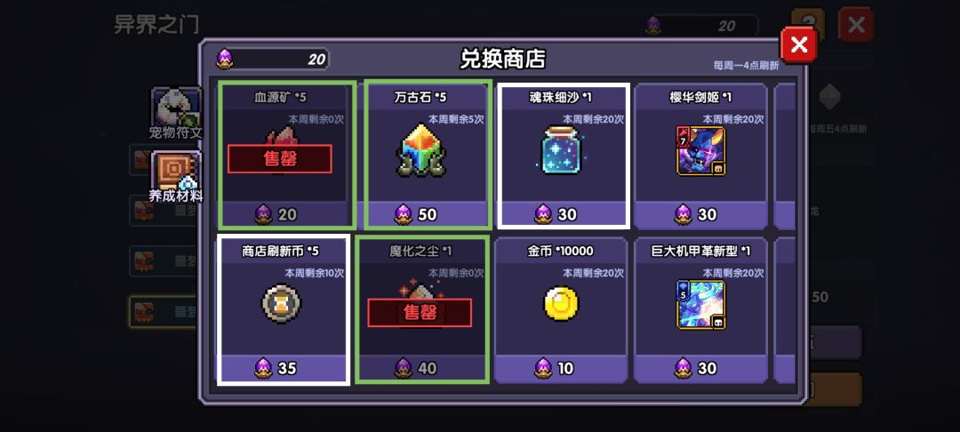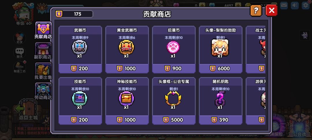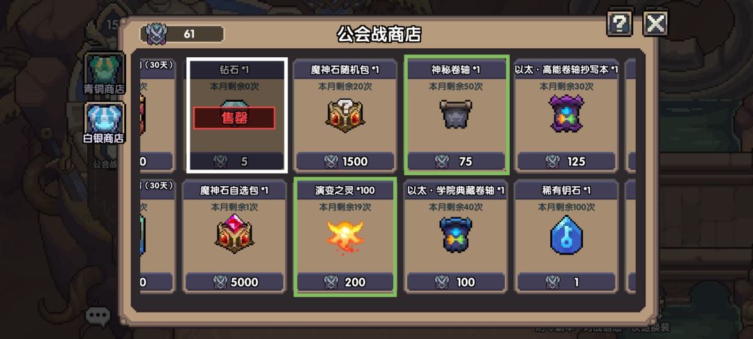 大秘境商店要随机应变,除了上面三种必换的资源以外,为了冲勇者等级可能会需要白尘和技能币.