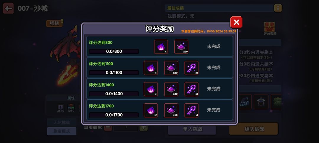 地牢分为残暴模式和强韧模式,两个模式分数相加,所以想要拿满奖励需要一个模式打过16层,另一个模式打过18层,去找大佬带吧(即使自己没有通关过混沌地牢也可以由别人邀请实现组队).