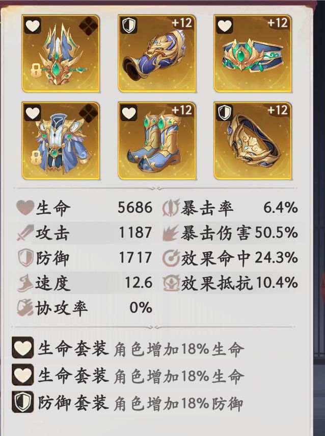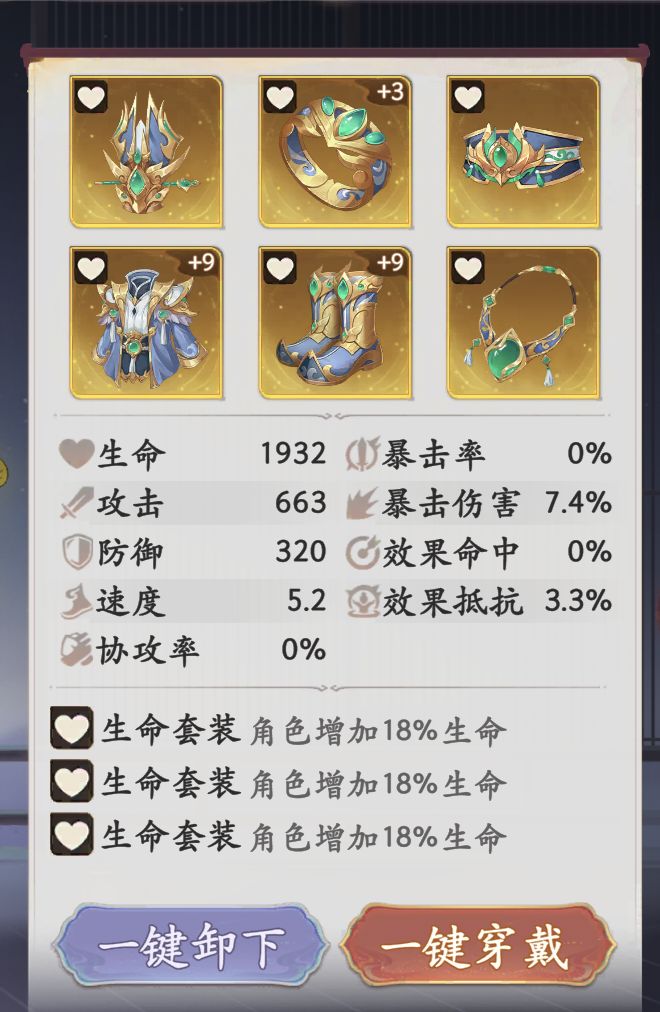 披挂方面,个人推荐使用双生命一防御或者双防御一抵抗,并不固定,也许还有更好搭配。