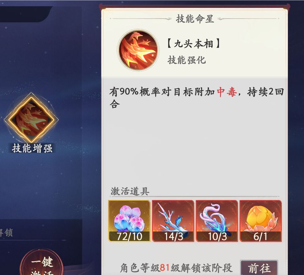 命格的激活需要使用名为道果的珍惜道具,重置不可返还,需要谨慎使用